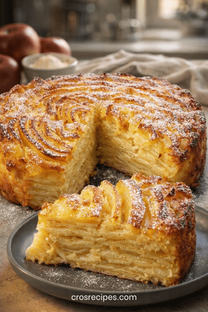 Le gâteau ouragan aux pommes est un dessert spectaculaire qui allie esthétique et gourmandise. Grâce à ses fines couches de pommes superposées et à sa texture fondante, il impressionne autant à la vue qu’au goût.